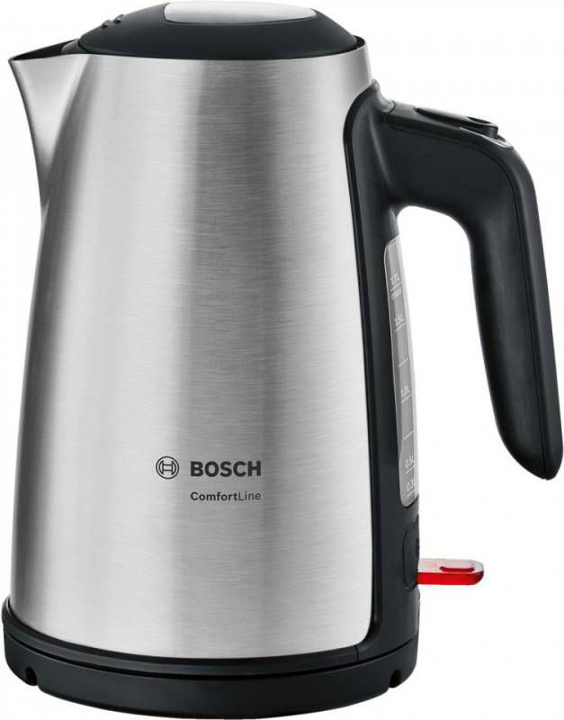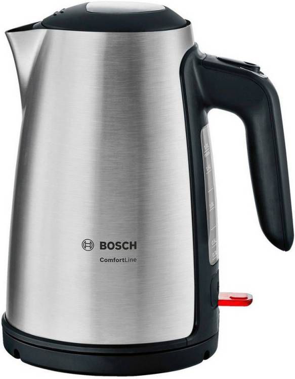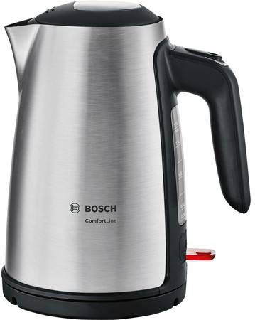 De Bosch waterkoker ComfortLine TWK6A813 is een stijlvolle waterkoker van roestvrijstaal met een ruime inhoud van 1,7 liter.