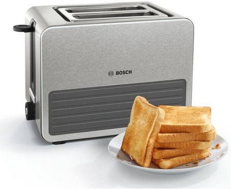 Begin bijzonder smaakvol aan de dag, met een compacte toaster in buitengewoon design. Met de TAT7S25 van BOSCH, van edelstaal met silicone. Met ontdooi- en opwarmfunctie. Speciale eigenschappen: *.
