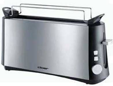 De Cloer Broodrooster 3810 heeft een lange sleuf voor het roosteren van twee sneden brood of één lange snede brood. Dit broodrooster heeft een draaiknop voor het instellen van de bruiningsgraad en opwarmen, een stopknop en een.